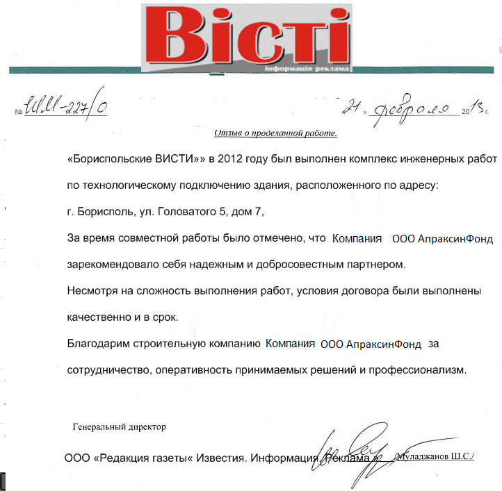 ГАРАНТИЙНОЕ ПИСЬМО ОТ ОРГАНИЗАЦИИ